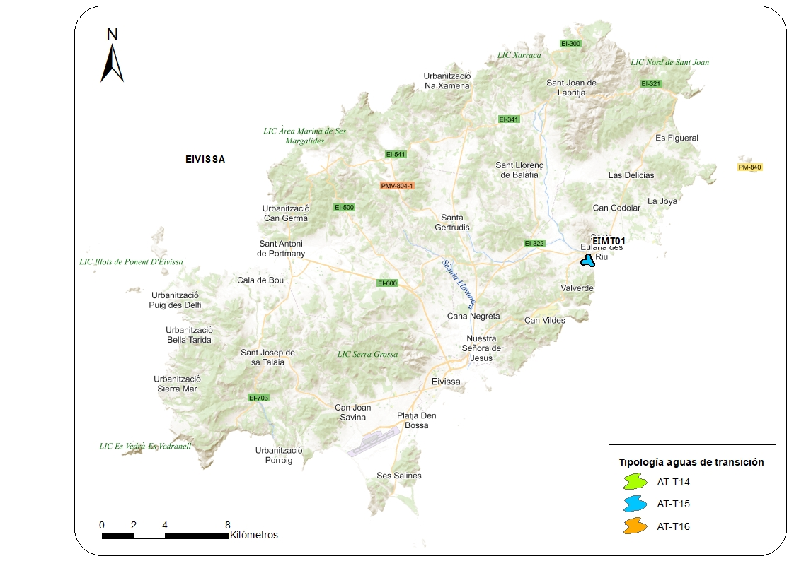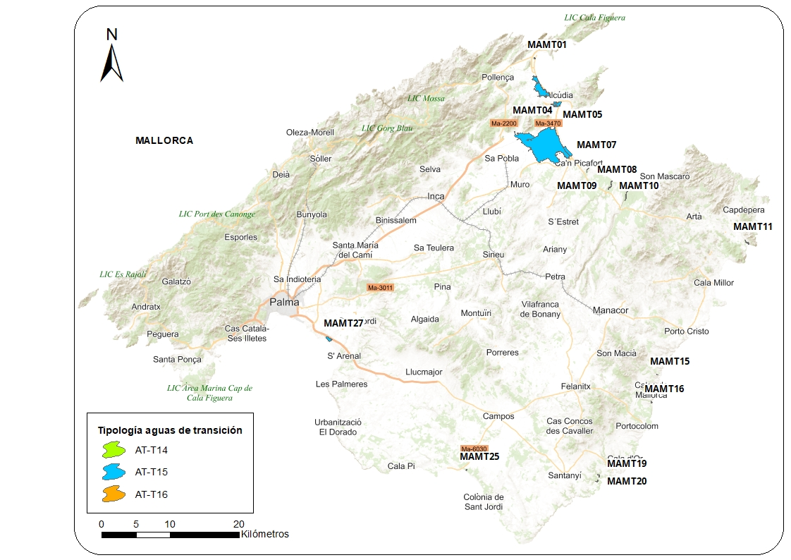 Tipus de masses d’aigües superficials de la categoria aigües de transició a les Illes Balears (Font: Annex 1 de la Memòria del PHIB 2022)
