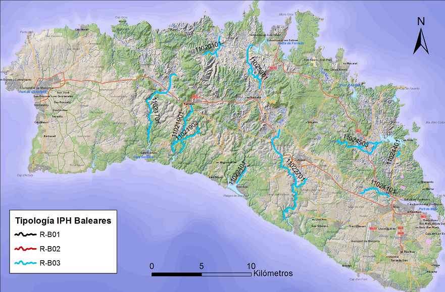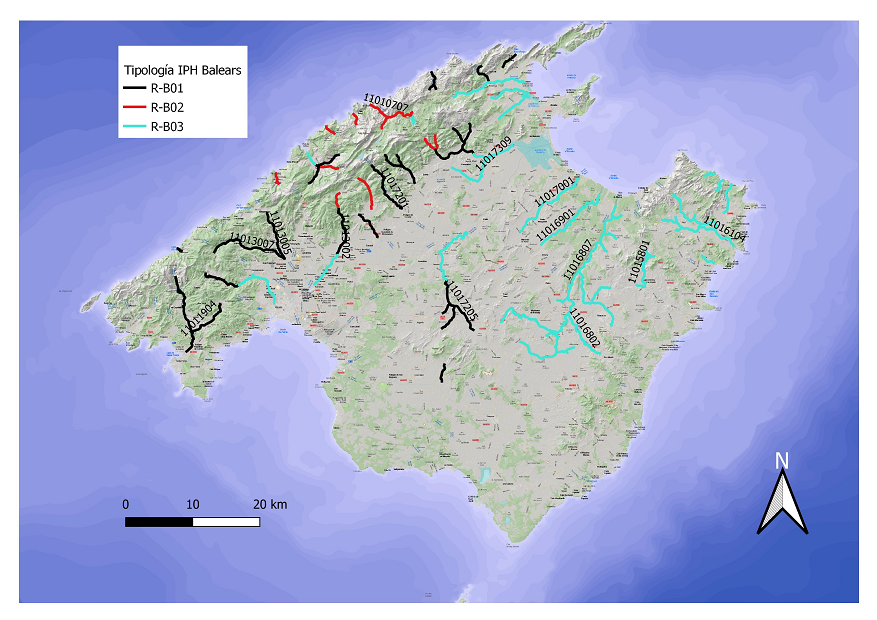 Tipus de masses d’aigües superficials de la categoria riu a les Illes Balears (Font: Annex 1 de la Memòria del PHIB 2022)