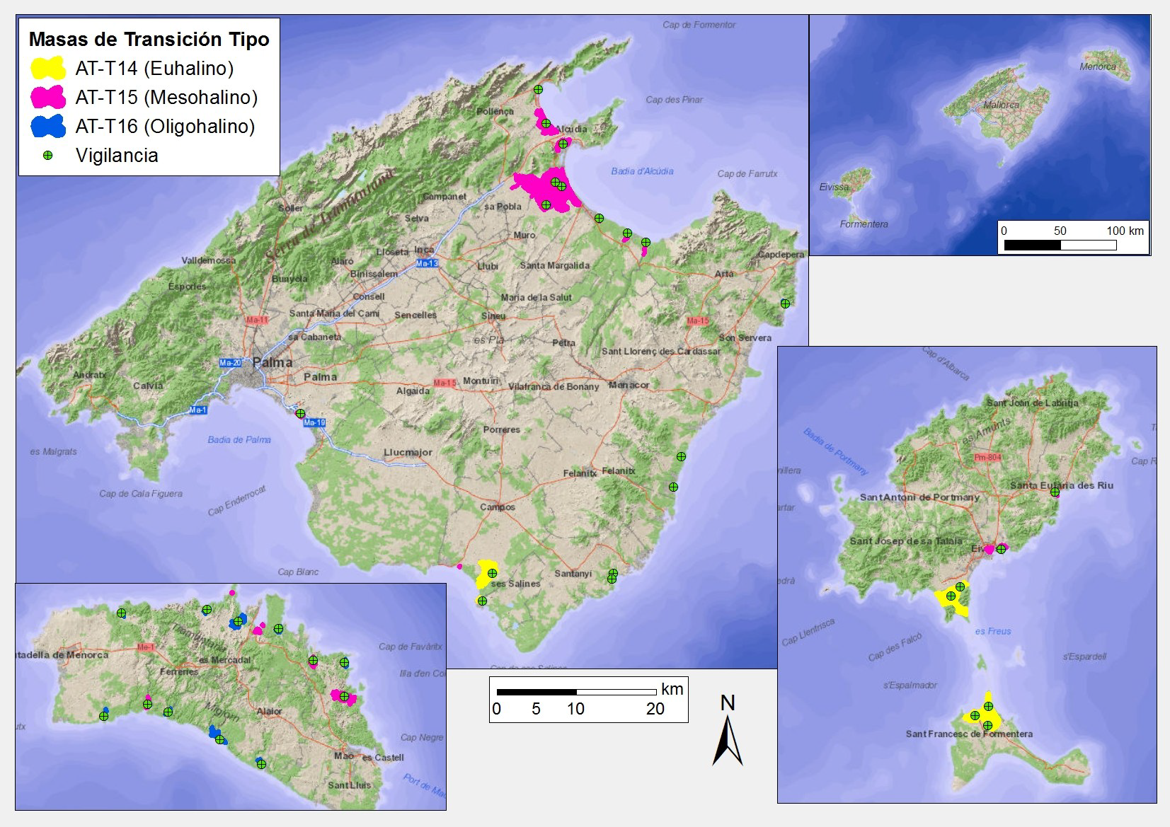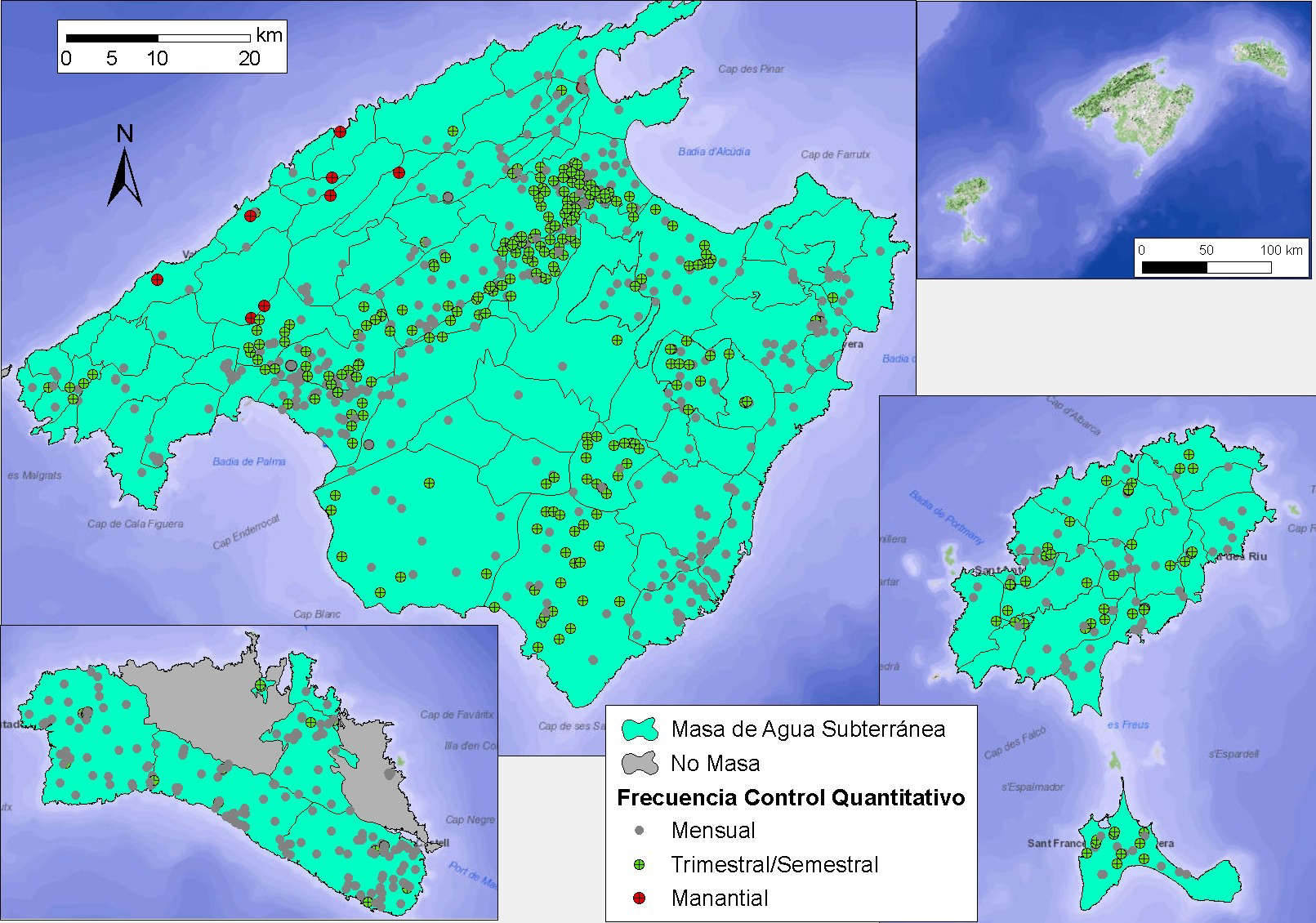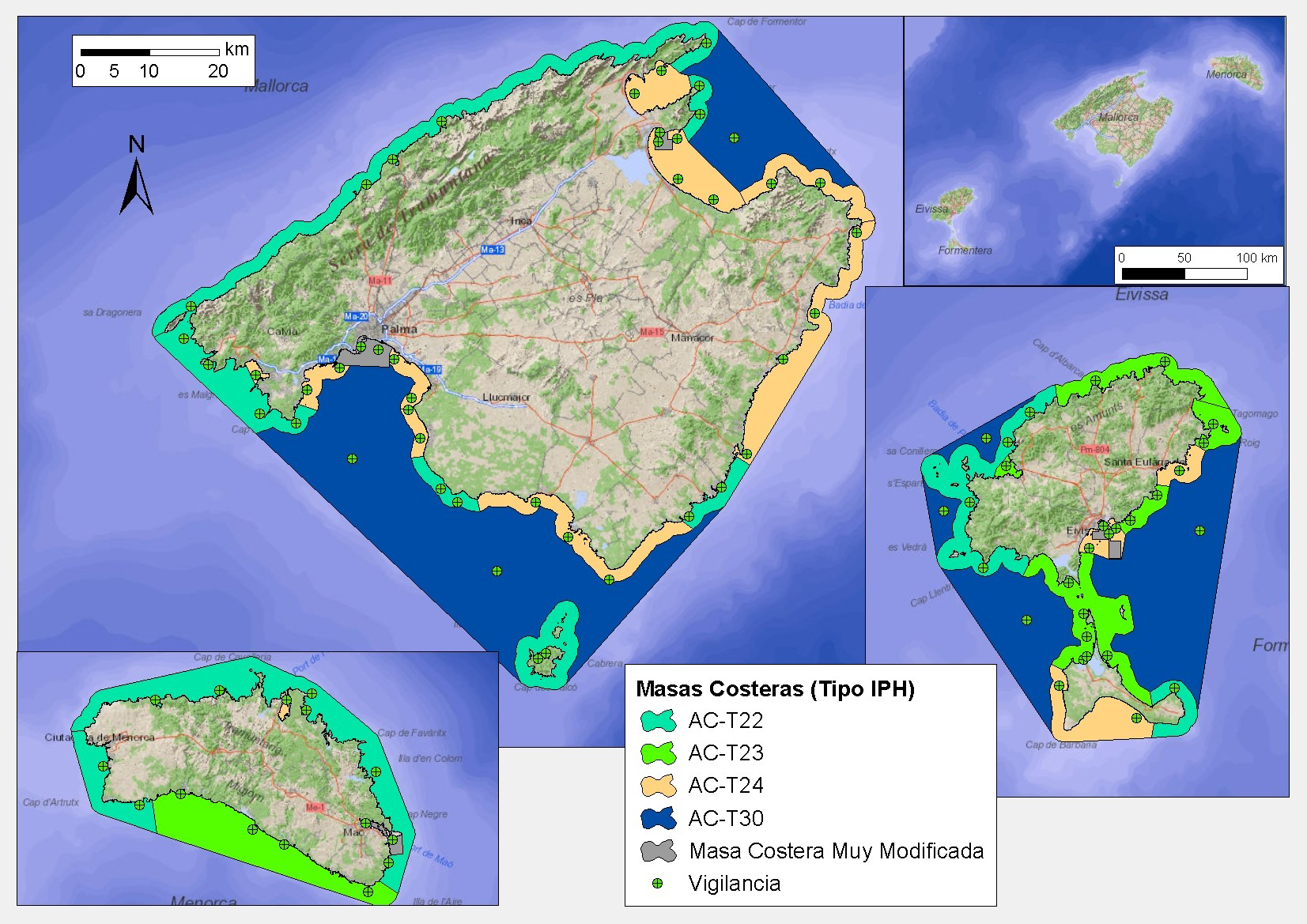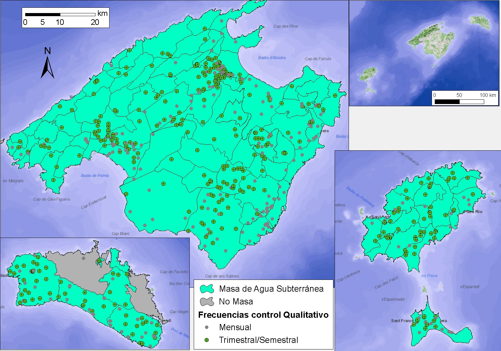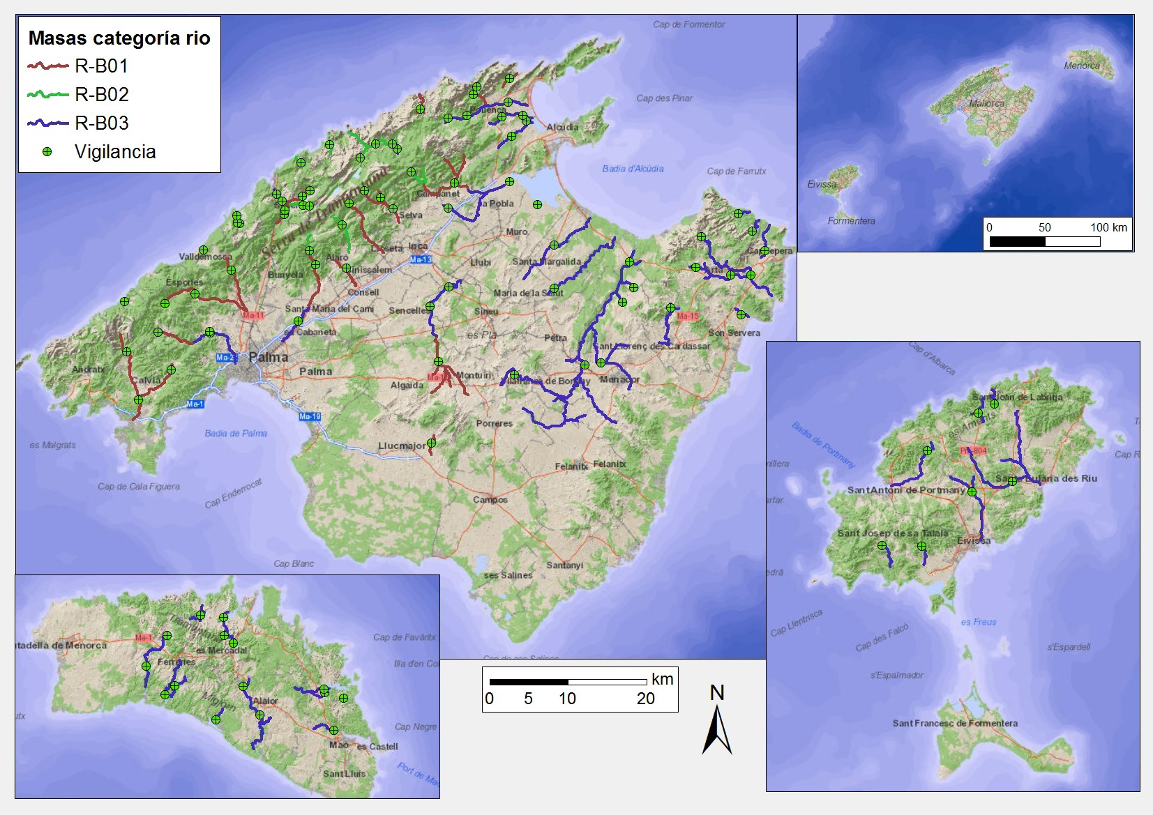 Els programes de control i vigilància de les masses d’aigua es realitzen a estacions de control específiques per a cada tipus de massa d’aigua i que es troben repartides al llarg de tot el territori balear.