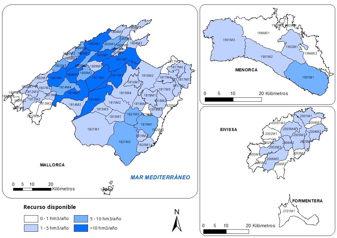 A la figura següent es pot observar els recursos subterranis que hi ha actualment disponibles a les Illes Balears: