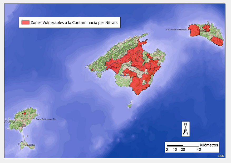 La primera designació de zones vulnerables a les Illes Balears es va fer mitjançant el Decret 116/2010, de 19 de novembre, el qual ha estat derogat pel Decret 18/2023, de 27 de març, pel qual es designen les zones vulnerables per la contaminació de nitrats procedents de fonts agràries de les Illes Balears i s’aprova el Programa de seguiment i control del domini públic hidràulic.