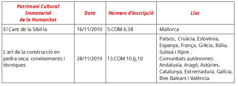 DECLARACIONS DE BÉNS D’INTERÈS CULTURAL IMMATERIAL A MALLORCA