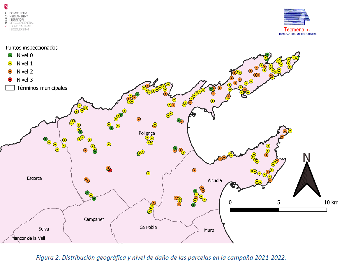 Mapa de afectación de Paysandisia archon en Mallorca NE- 2022