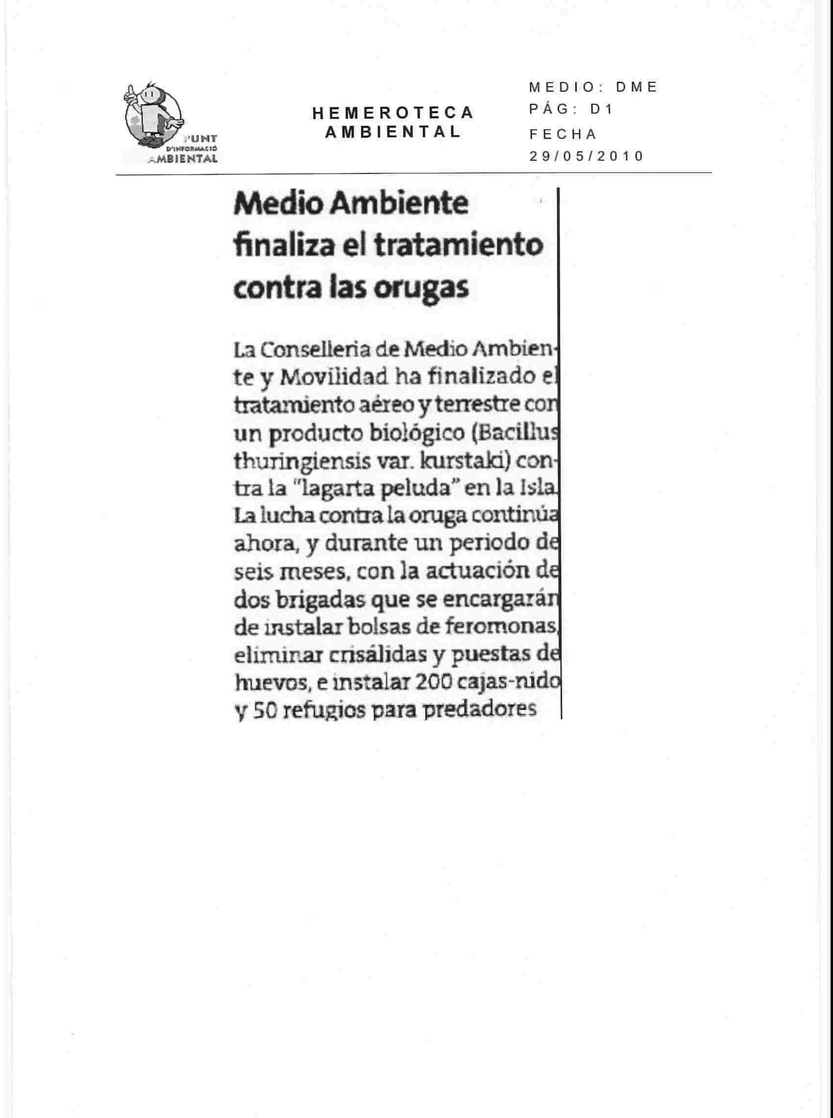 Medio ambiente finaliza el tratamiento contra las orugas
