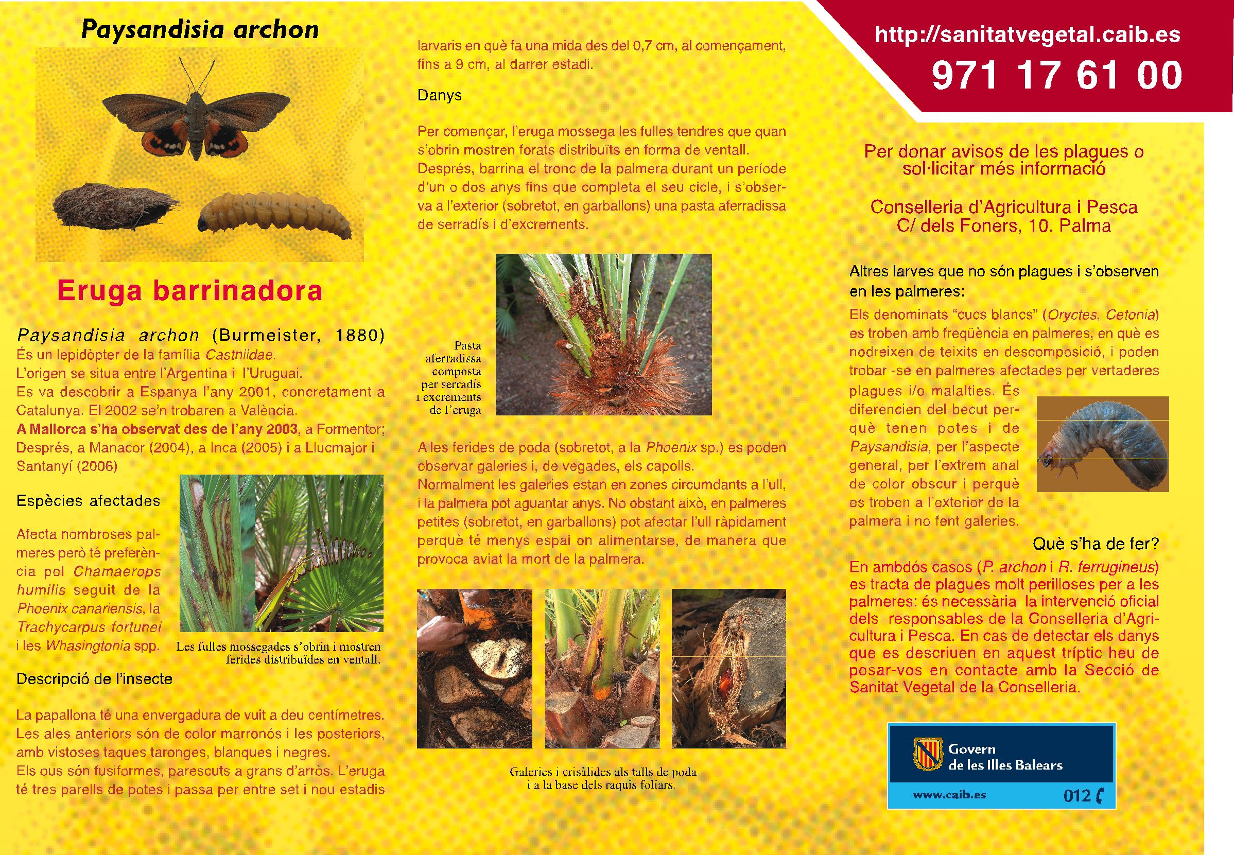 Especial oruga perforadora del palmito (Paysandisia archon)